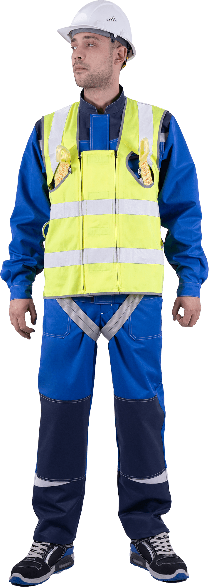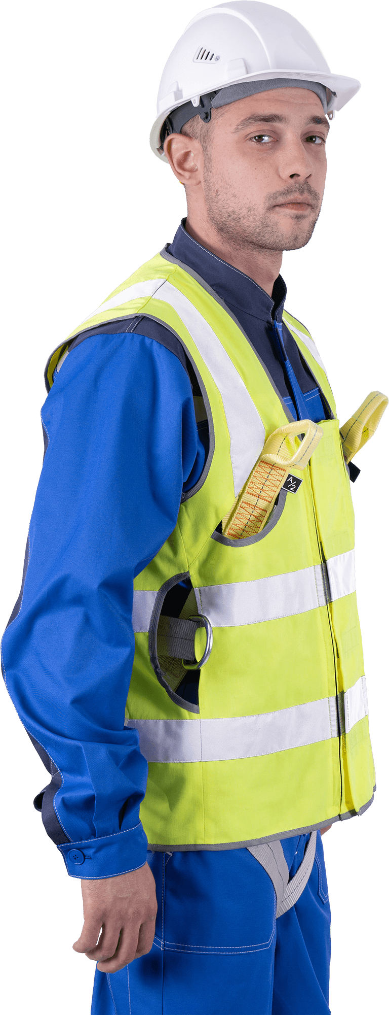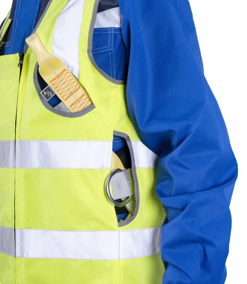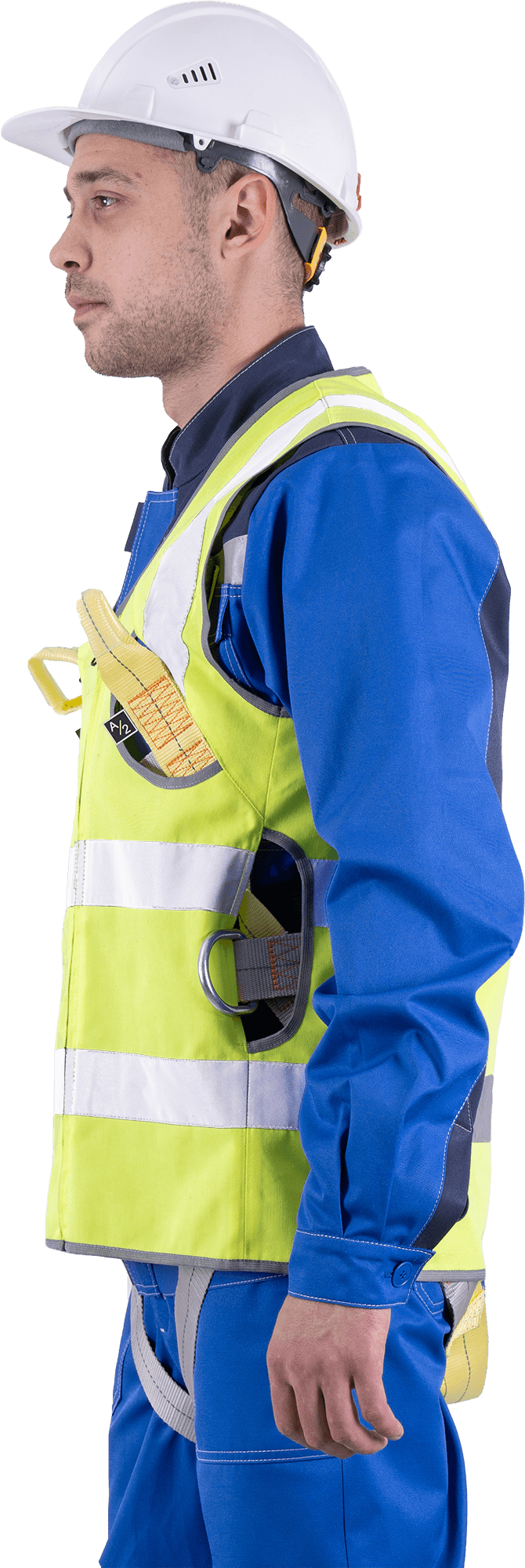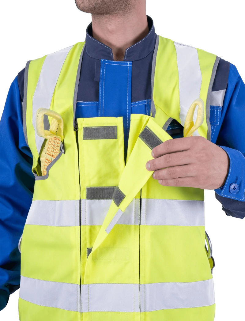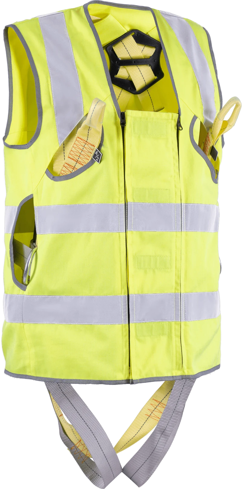 High visibility vest-cape for body harness, against mechanical unfluences and GPP