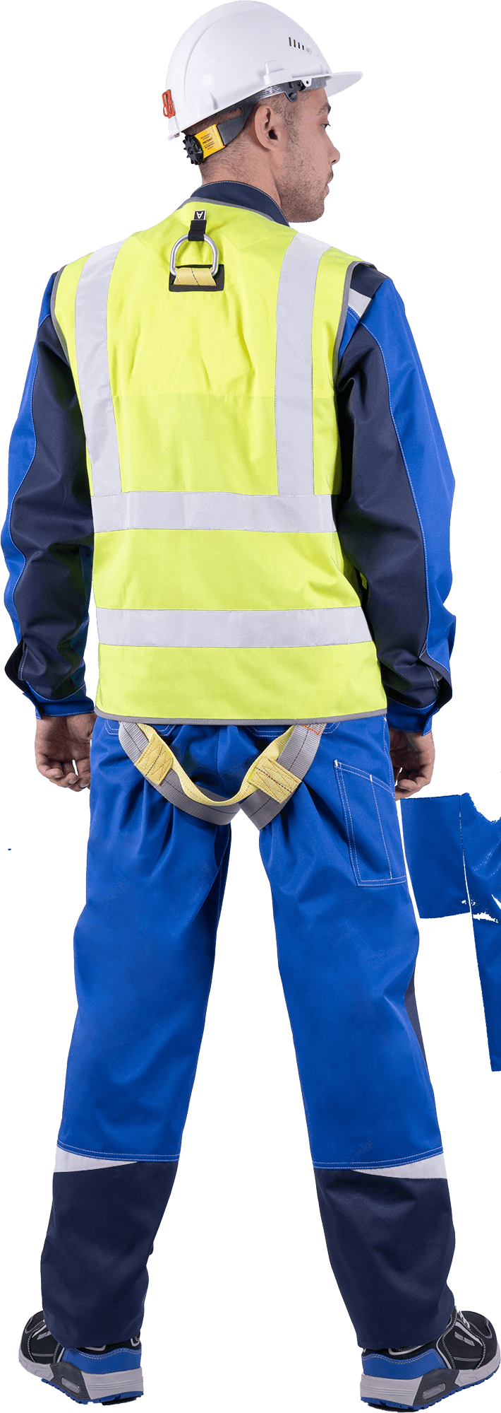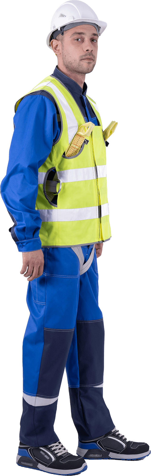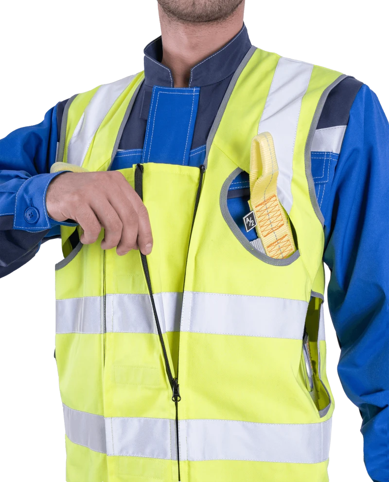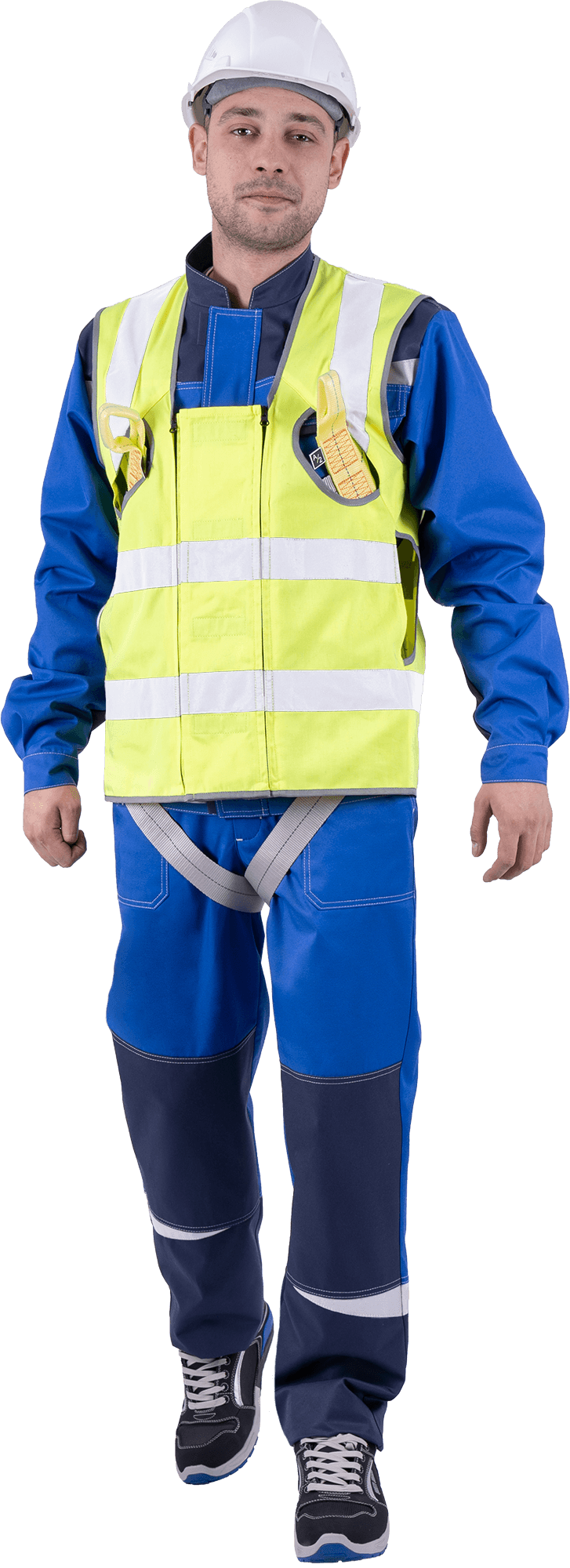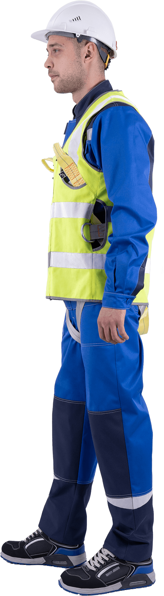 High visibility vest-cape for body harness, against mechanical unfluences and GPP
