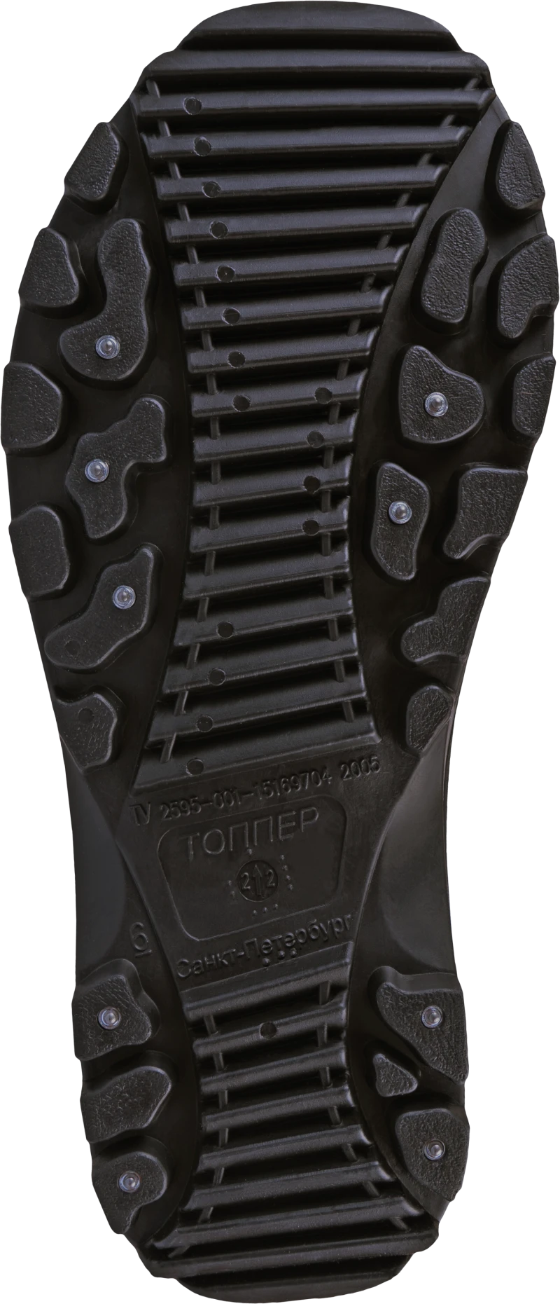 Галоша: МБС, КЩС резина, формуется на синтетическом чулке, шипы с якорной посадкой, для повышения противоскольжения, протектор глубокий и открытый. Уверенное сцепление со льдом, снегом, мокрым грунтом.