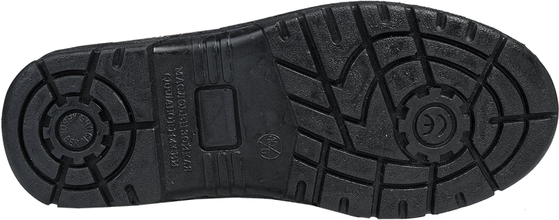-Подошва: однослойный полиуретан (ПУ), морозостойкая (до -35 °С), термостойкая (до +85°С), имеет МБС и КЩС свойства.