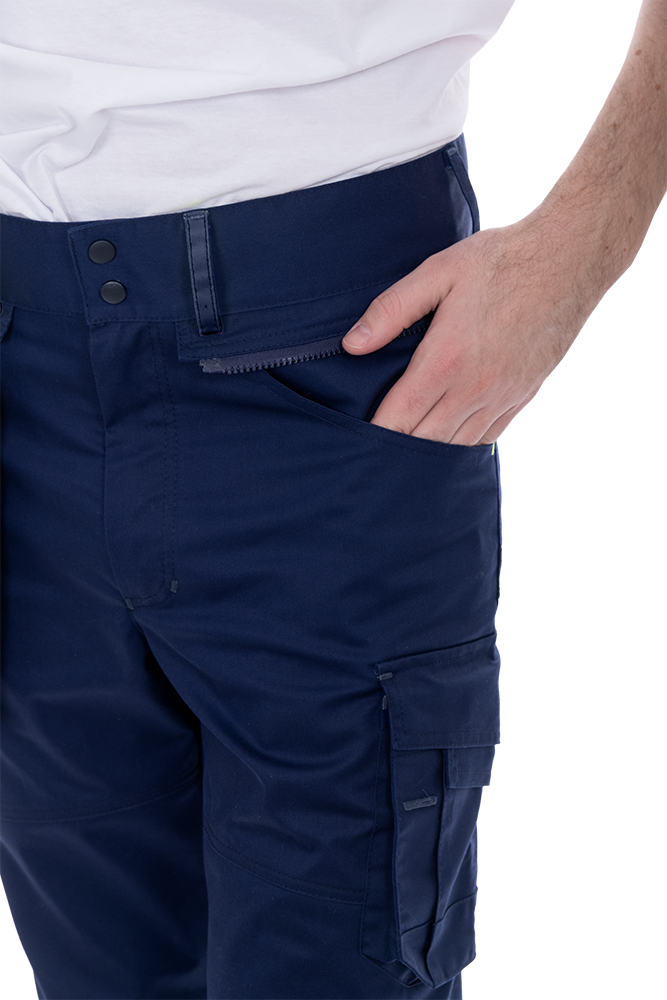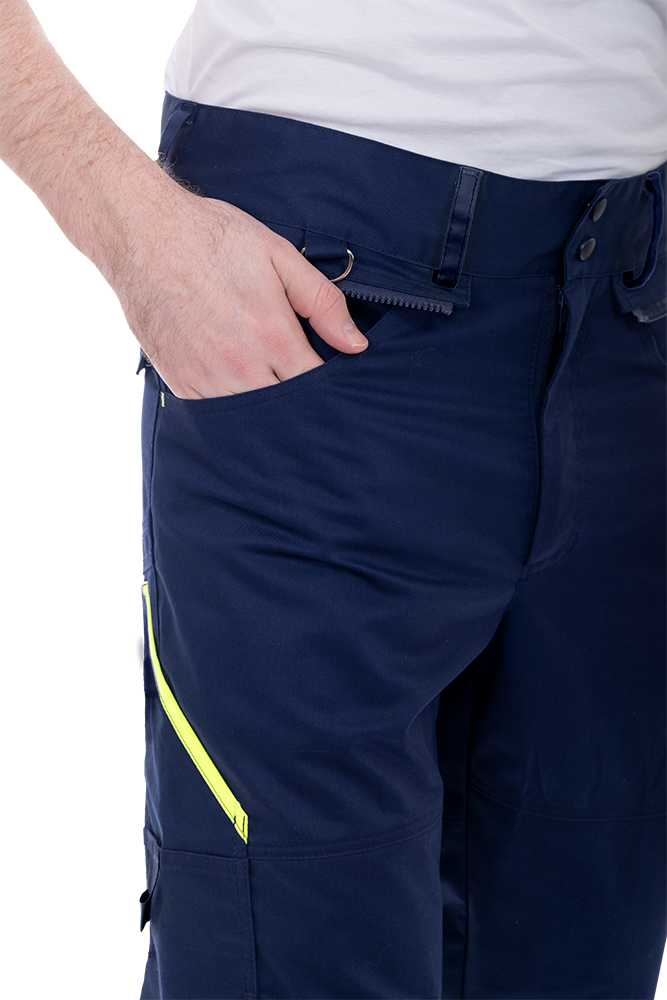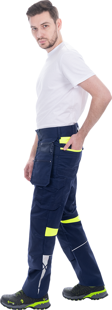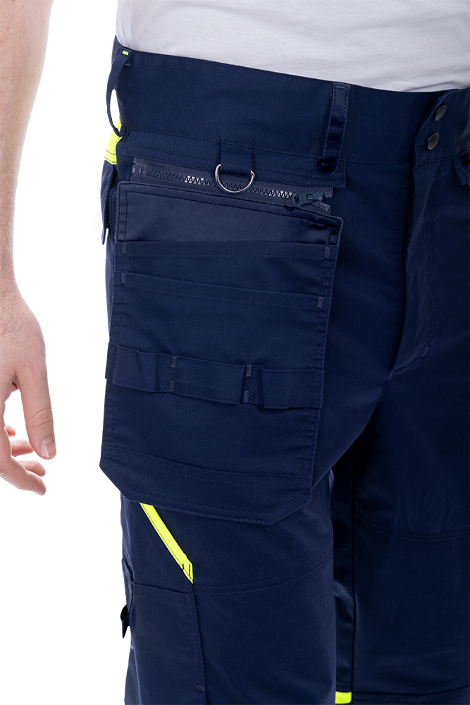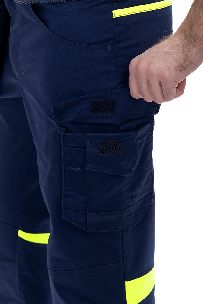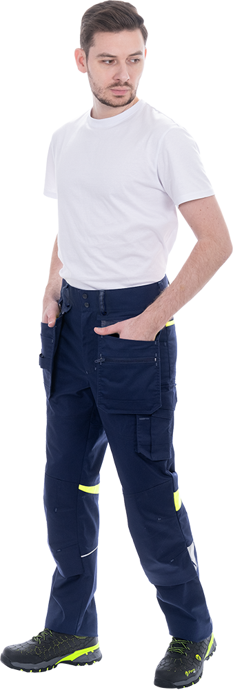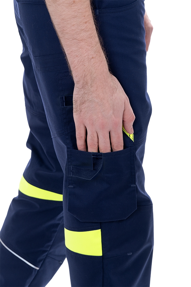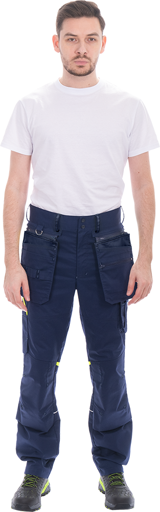 Брюки мужские ACTIVE FLEX / АКТИВ ФЛЕКС для защиты от механических воздействий и ОПЗ, т.синий-флуоресцентный желтый