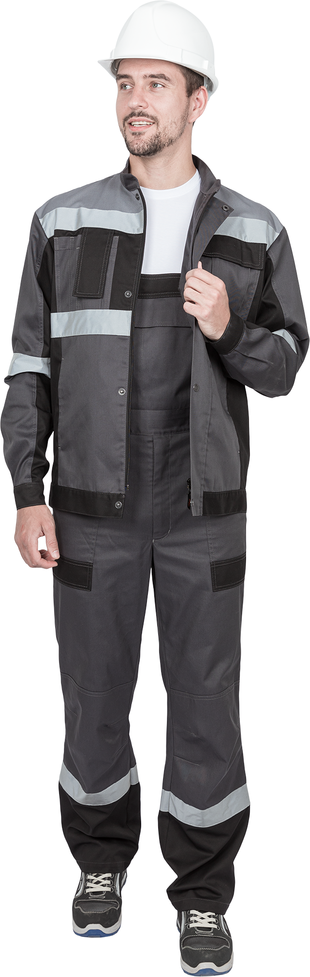 Костюм мужской ГРАНИТ НЕО от механических воздействий и ОПЗ (куртка, полукомбинезон), серый/черный