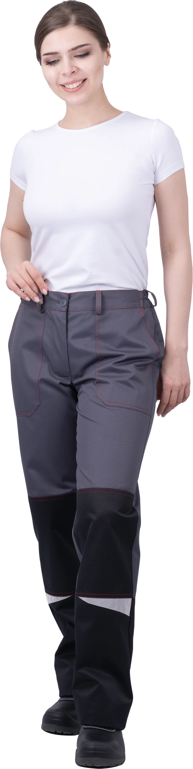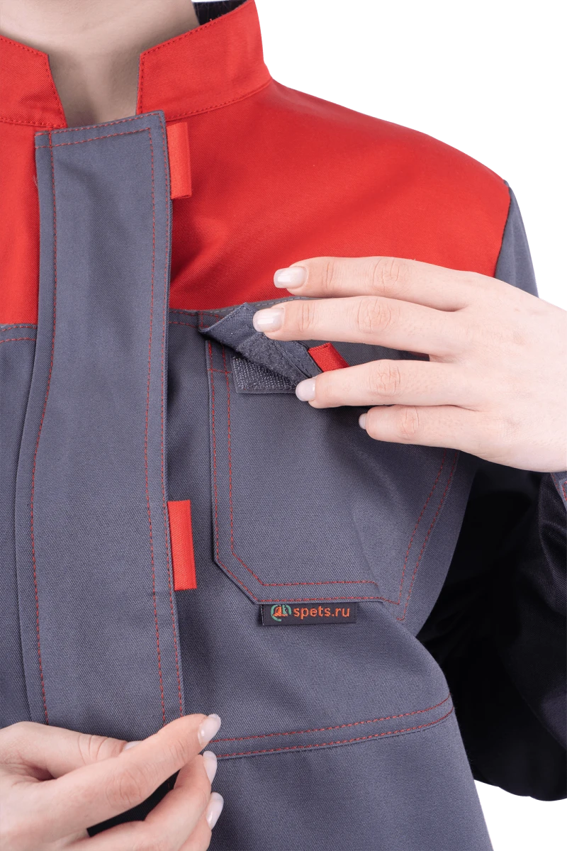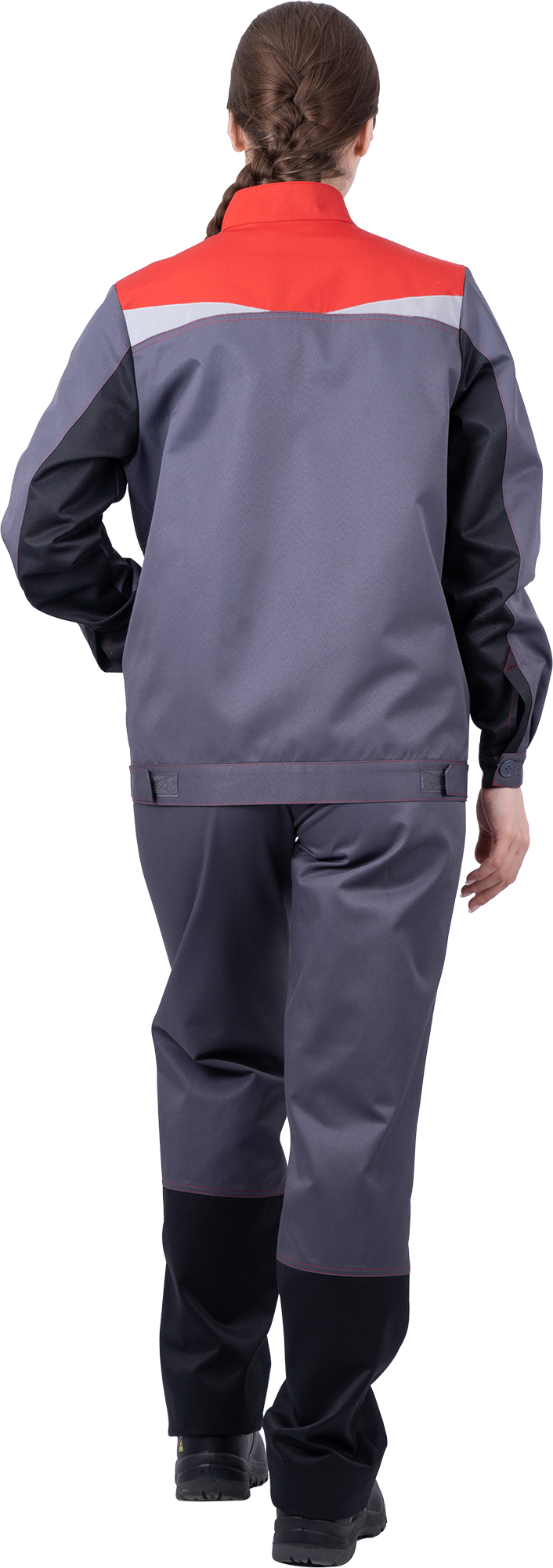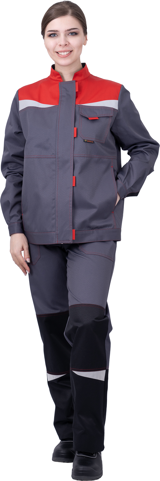 Костюм женский КМ-10 ЛЮКС от механических воздействий и ОПЗ (куртка, брюки), серый/красный/черный