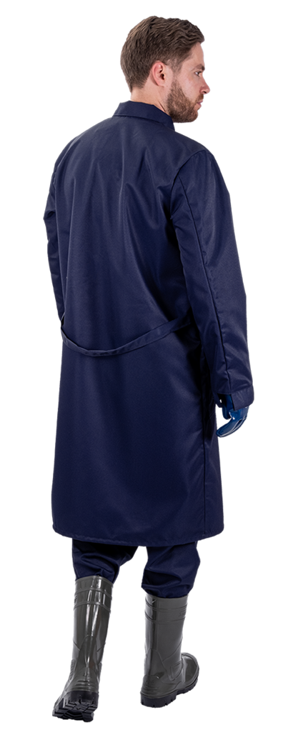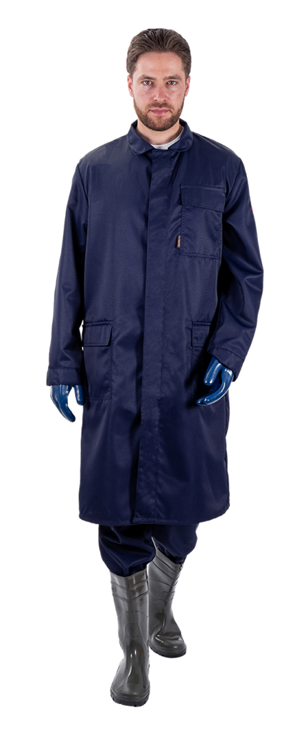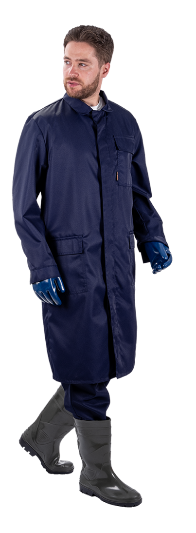 Комплект мужской от растворов кислот и щелочей, механических воздействий, (халат, брюки), темно-синий