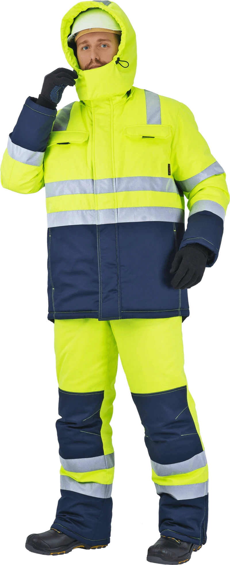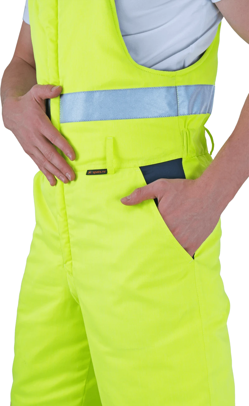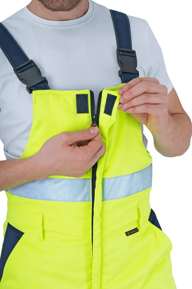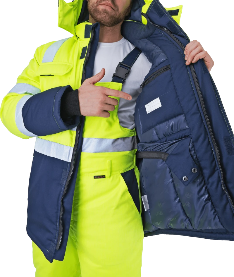 Костюм мужской РЕФЛЕКТ-1 сигнальный, от пониженных температур воздуха и ветра, механических воздействий и ОПЗ (куртка, полукомбинезон), флуоресцентный желтый/синий