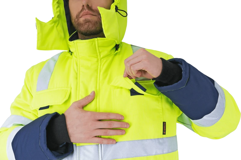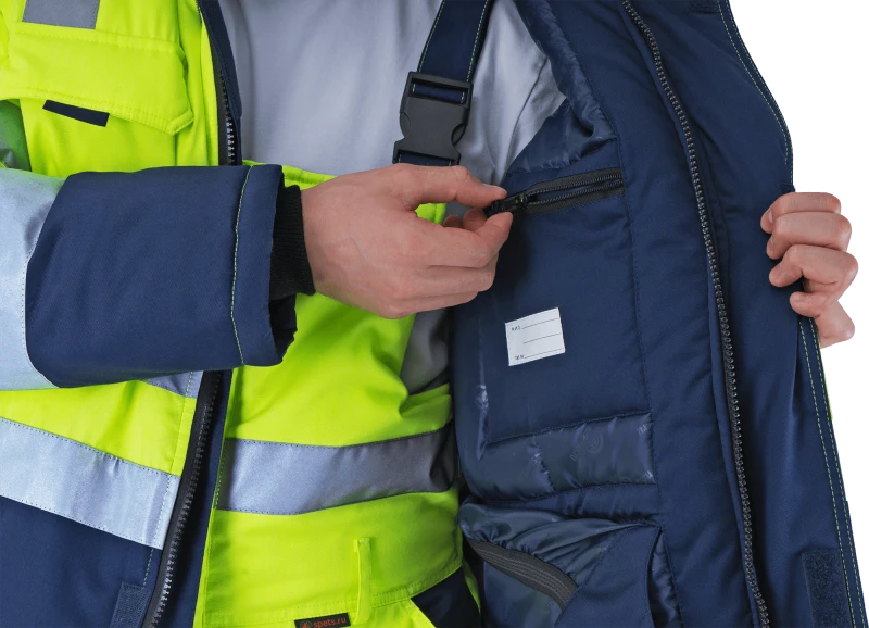 Men' s high visibility work suit REFLECT-1 against reduced air temperature and wind, mechanical unflu