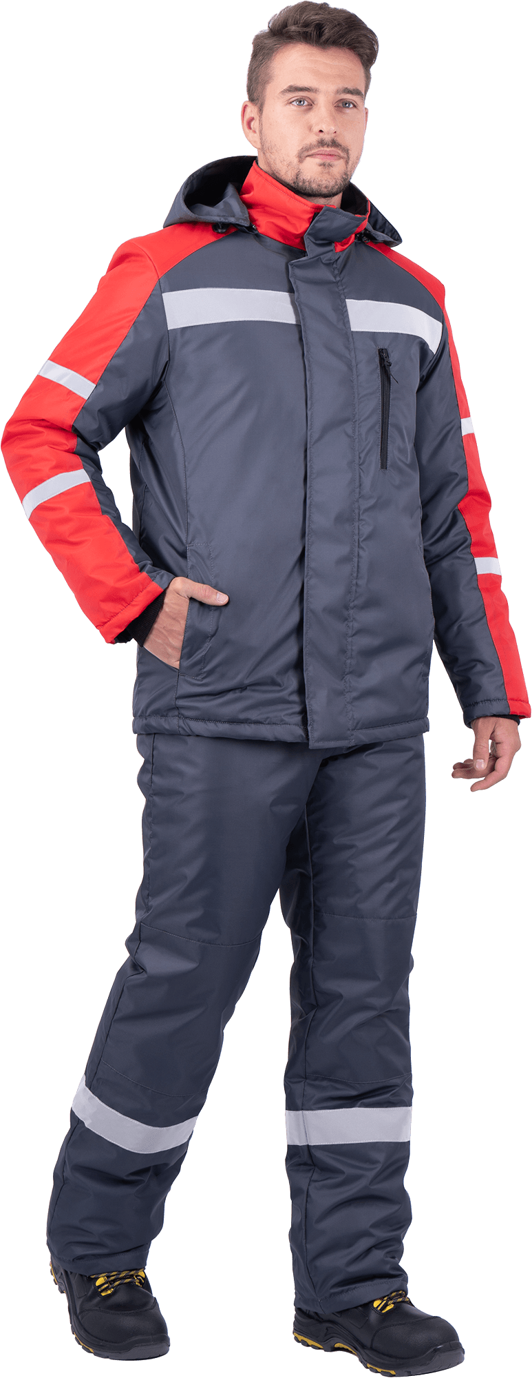 Куртка мужская РОУД от пониженных температур воздуха, механических воздействий и ОПЗ, т.серый-красный